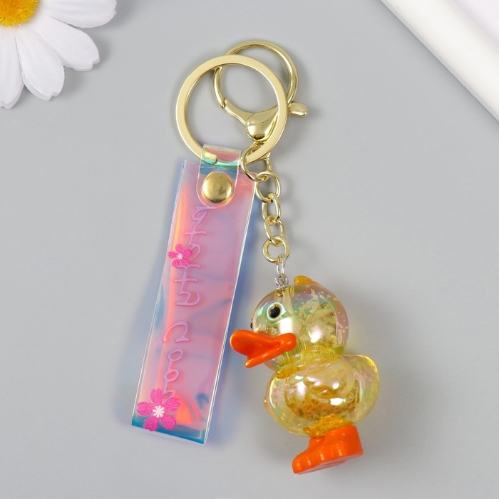 Брелок пластик с карабином, ремешком "Утёнок с блёстками" 3,3х3,7х5 см
