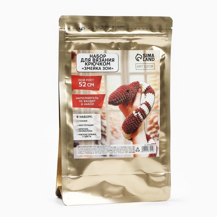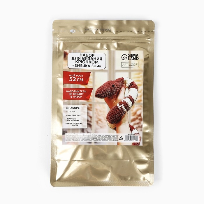 Набор для вязания крючком на новый год. Амигуруми: мягкая игрушка своими руками «Змея Зои», 52 см, новогодний набор для творчества, символ года 2025