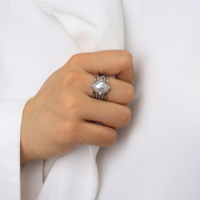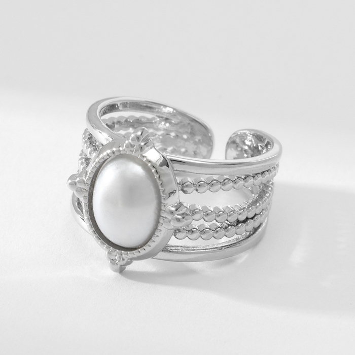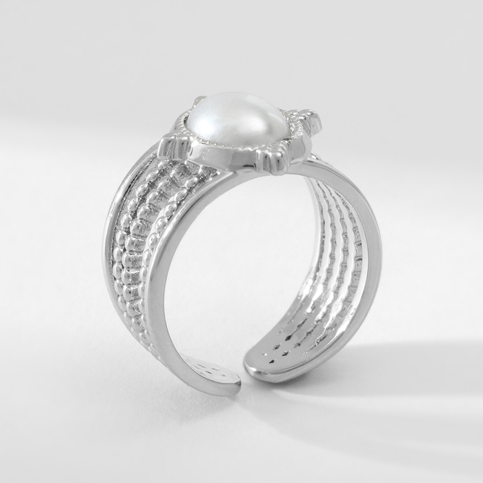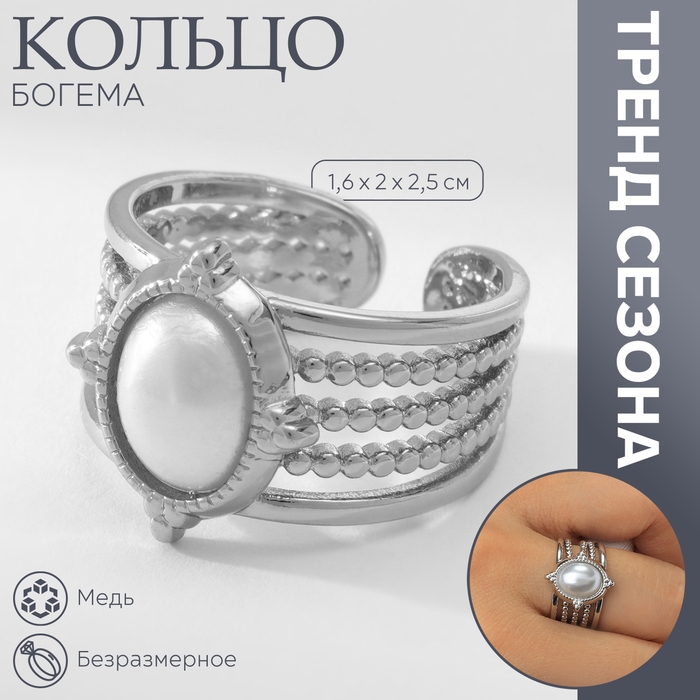 Кольцо с жемчугом «Богема» цвет белый в серебре, безразмерное