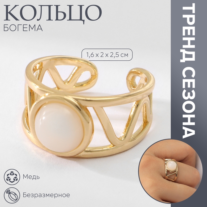 Кольцо «Богема» геометрия, цвет белый в золоте, безразмерное
