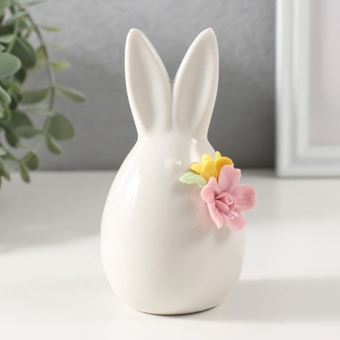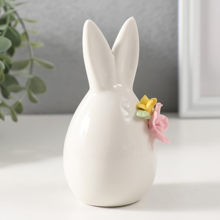 Сувенир керамика "Зайчик белый пухлый с букетом" 6,6х6,3х11,9 см