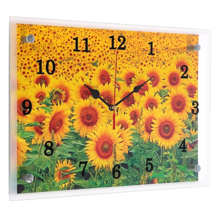 Часы-картина настенные, интерьерные "Подсолнухи", бесшумные, 25 х 35 см
