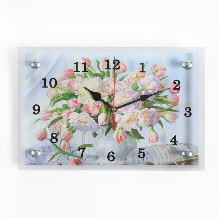Часы-картина настенные, интерьерные "Цветы в вазе", бесшумные, 30 х 20 см