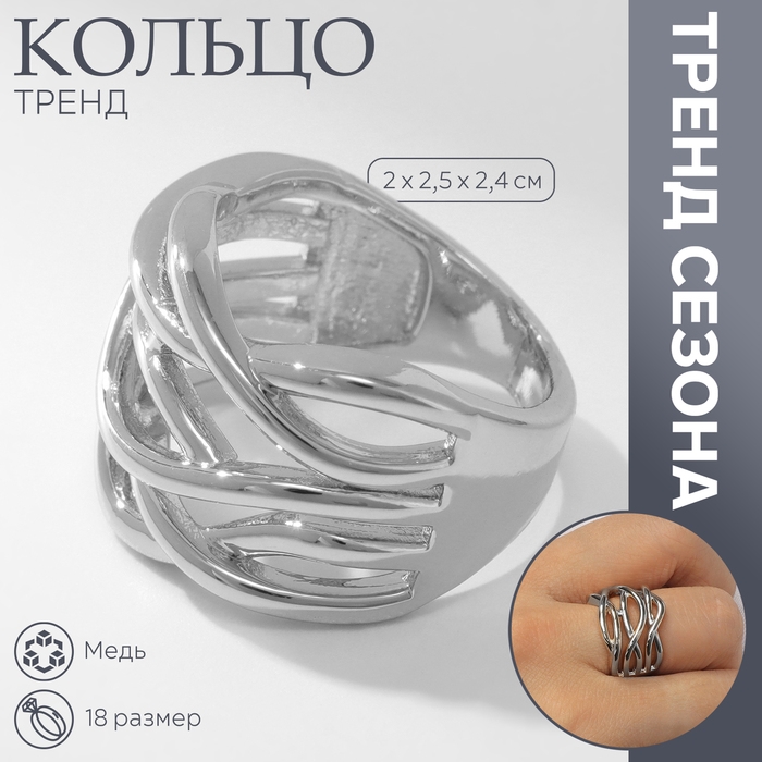 Кольцо металл «Тренд» тройное переплетение, цвет серебро, размер 18