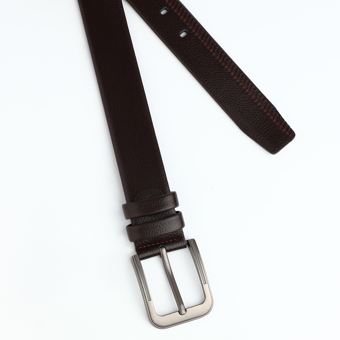 Ремень мужской, ширина 4 см, винт, пряжка металл, цвет коричневый