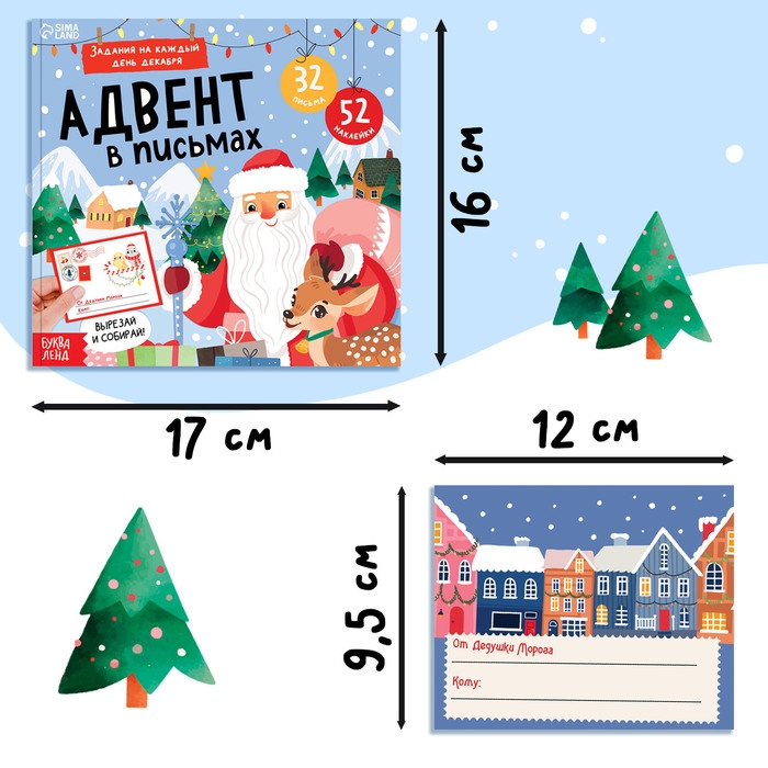 Книга «Адвент в письмах. Задания на каждый день декабря», 32 письма, 52 наклейки