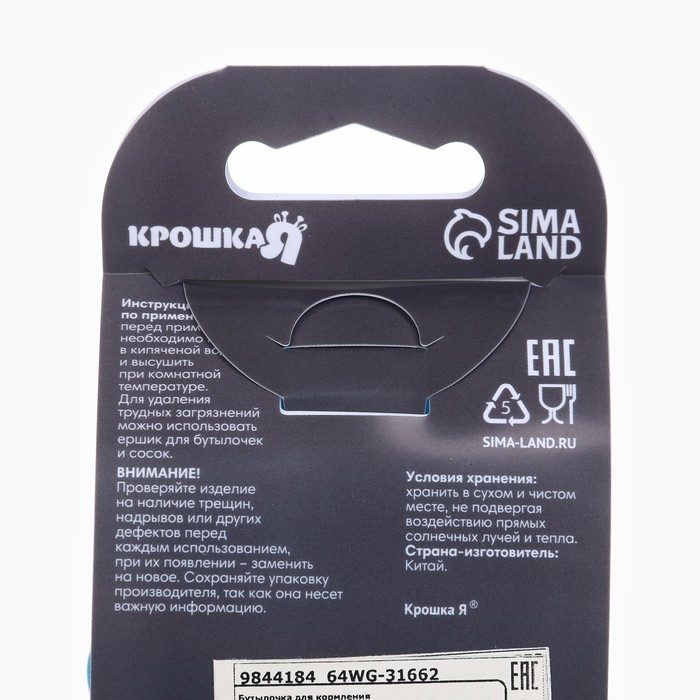 Бутылочка для кормления Ø50мм ШГ, +0мес., 150мл, цвет голубой