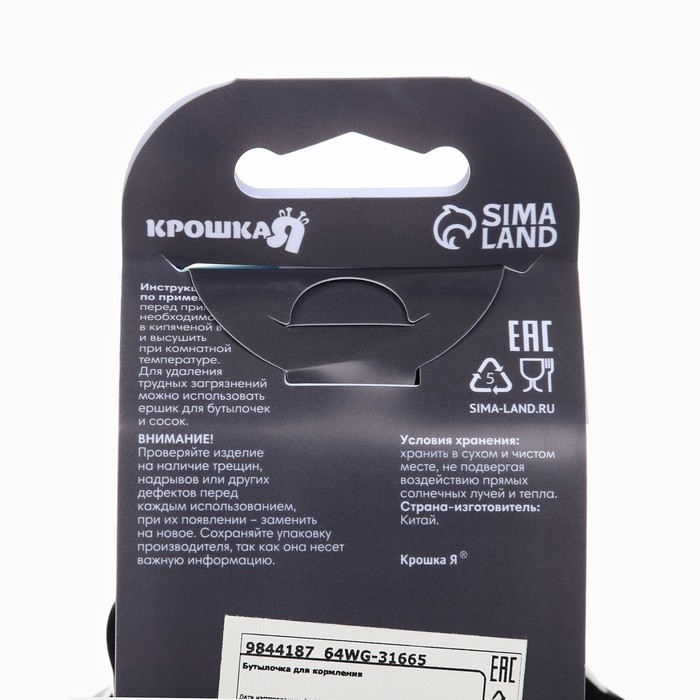 Бутылочка для кормления Ø50мм ШГ, +0мес.,150мл, цвет черный