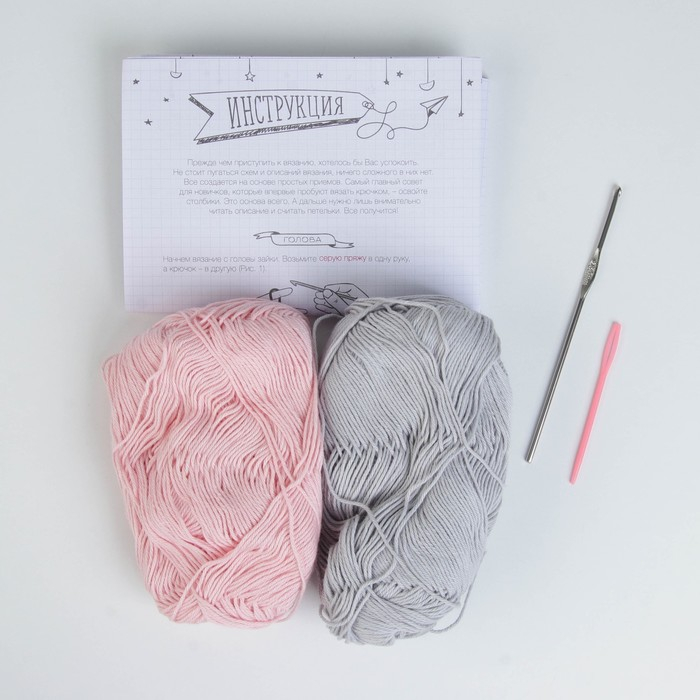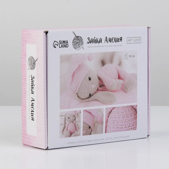 Набор для вязания. Амигуруми: мягкая игрушка своими руками «Сонная зайка Амелия», 26 см