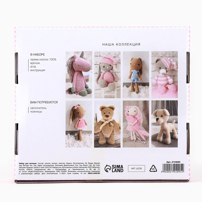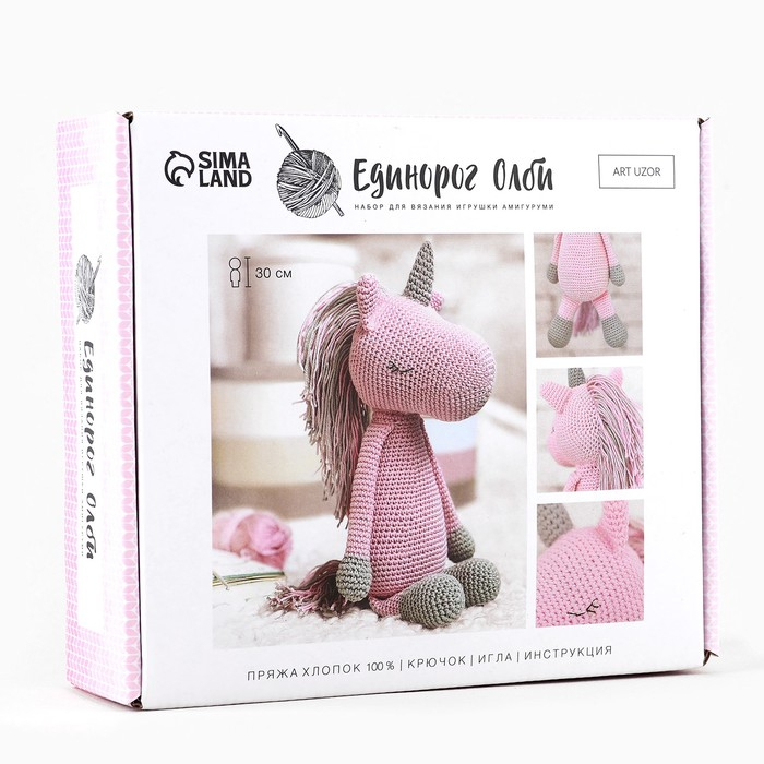 Набор для вязания. Амигуруми: мягкая игрушка своими руками «Единорожек Олби», 30 см