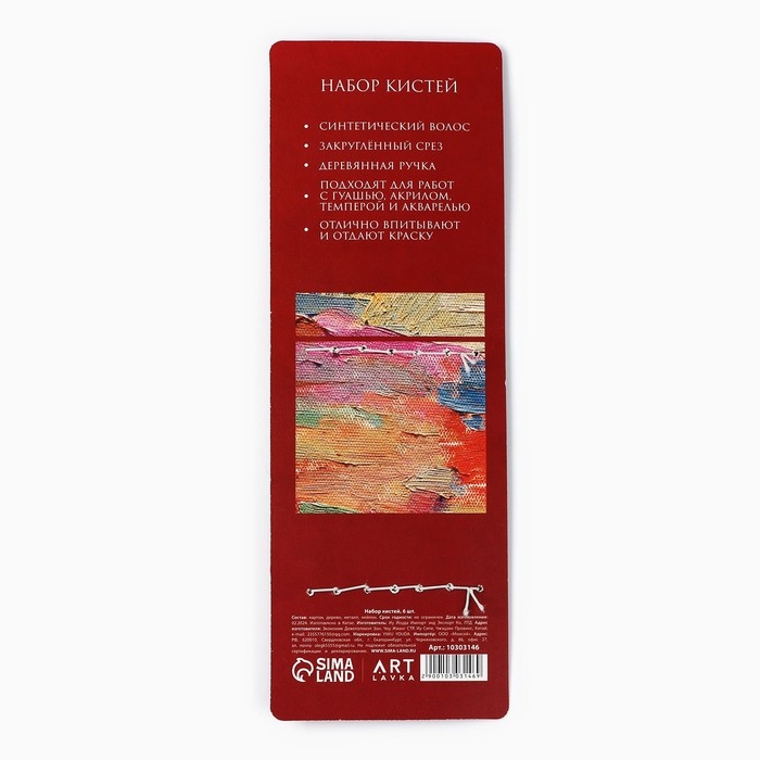 Кисть для рисования набор, синтетика круглые 6 штук «Текстура» № 2,4,6,8,10,12