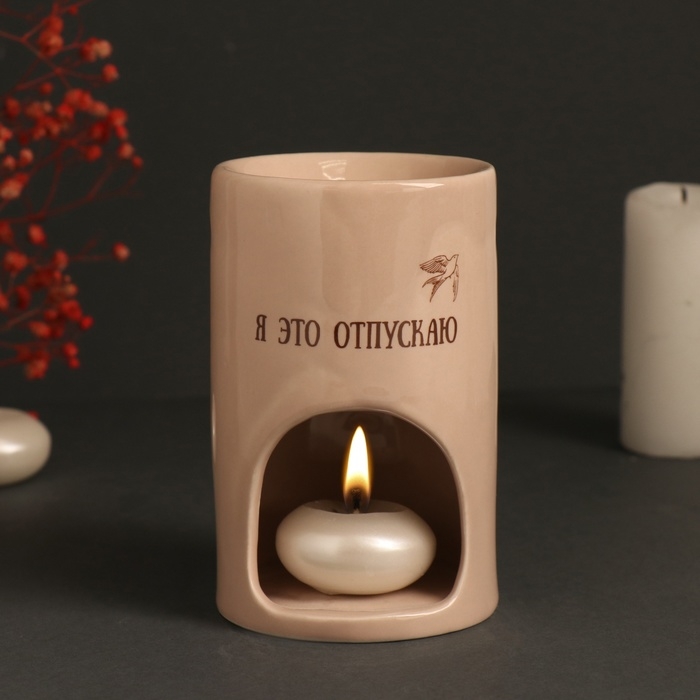 Аромалампа керамика "Я это отпускаю" бежевая 7,2х7,2х11,6 см