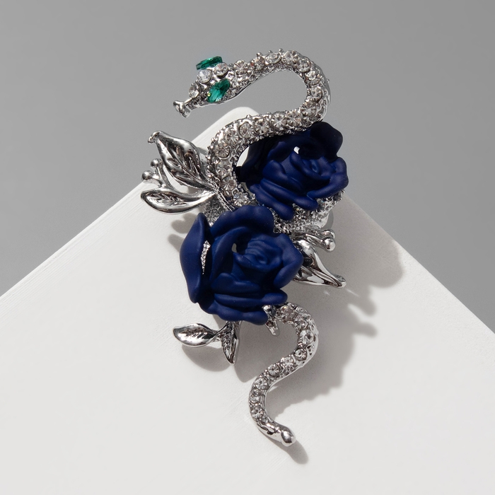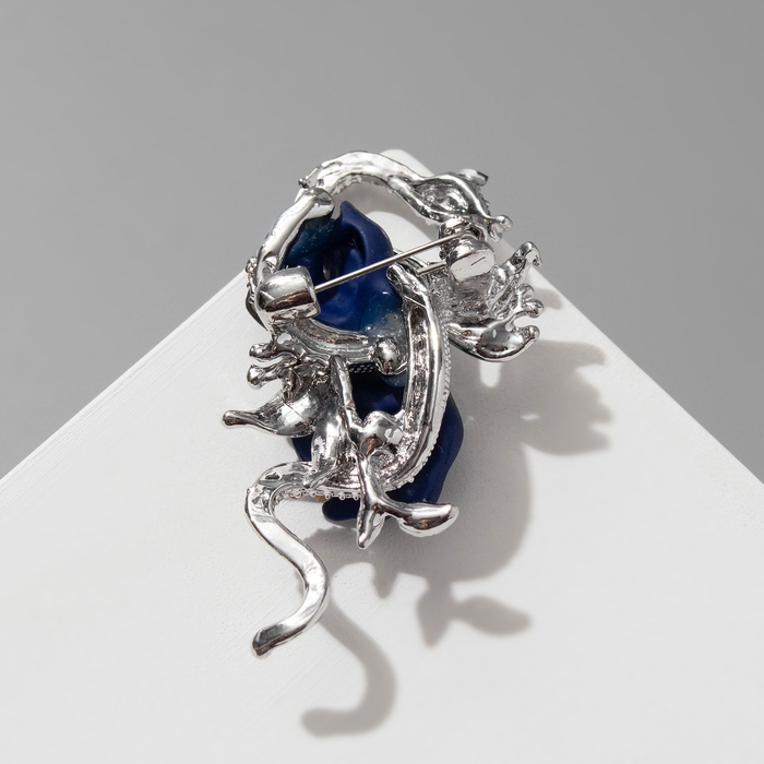 Брошь "Змея" обольстительница, цвет бело-синий в серебре