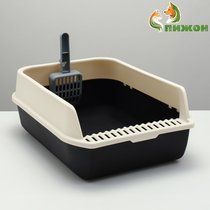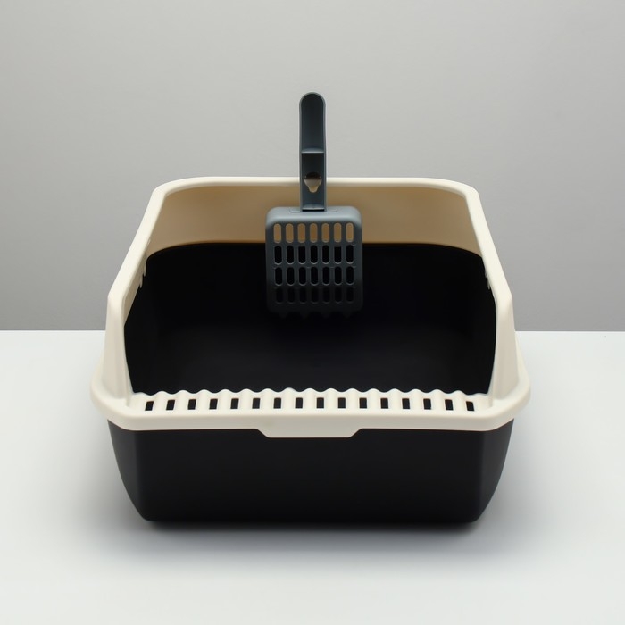 Туалет с высоким бортом с совком и фильтром, 50 х 36 х 21 см, чёрный