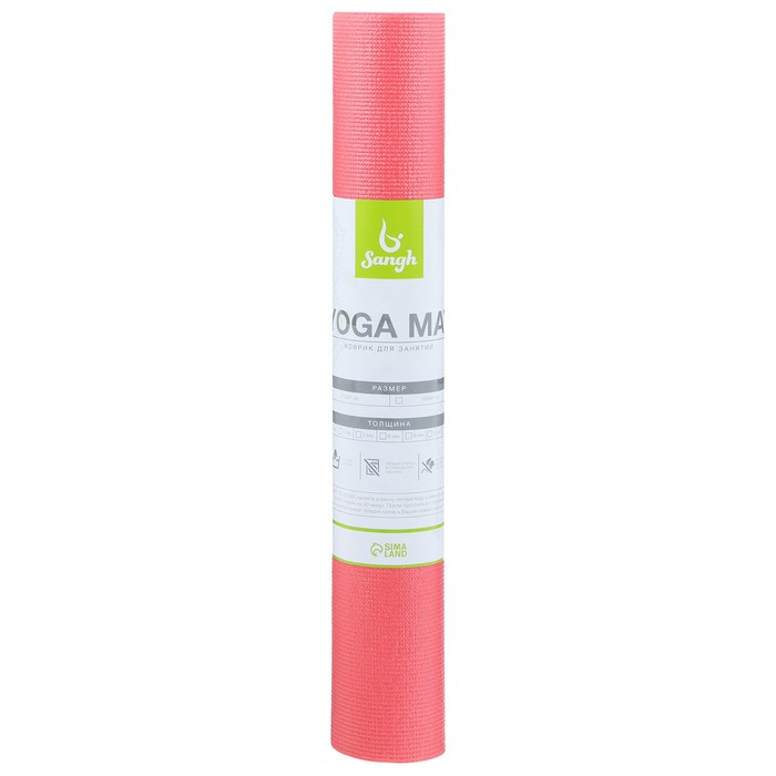 Коврик для йоги Sangh, 173х61х0,3 см, цвет розовый