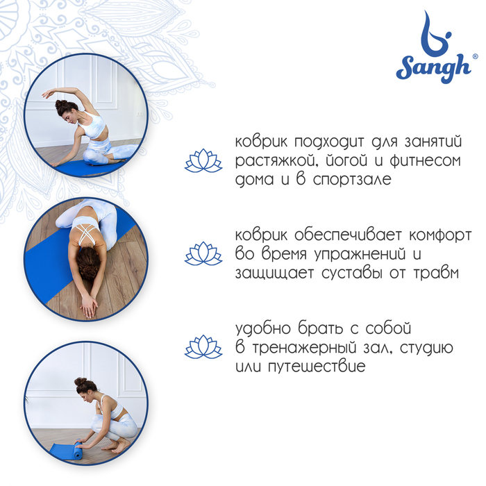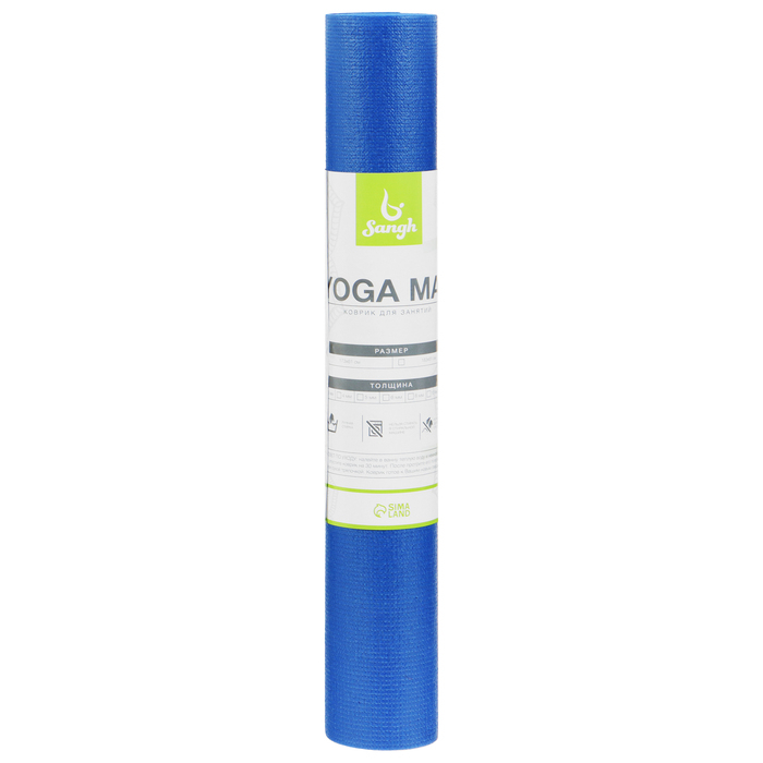 Коврик для йоги Sangh, 173х61х0,3 см, цвет синий