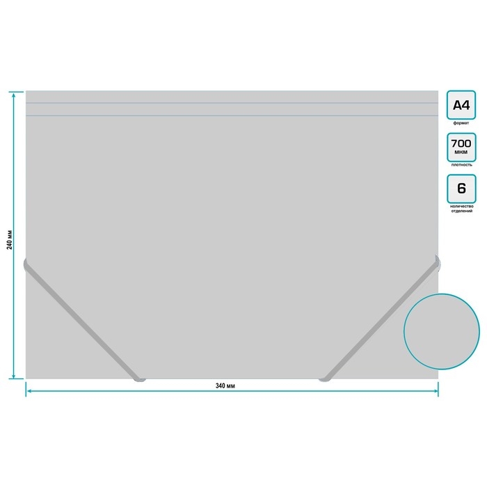 Папка картотека А4, Calligrata "Акварель", 6 отделений, пластиковая, 700 мкм, бирюзовая, резинка чёрная