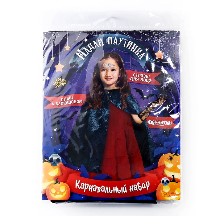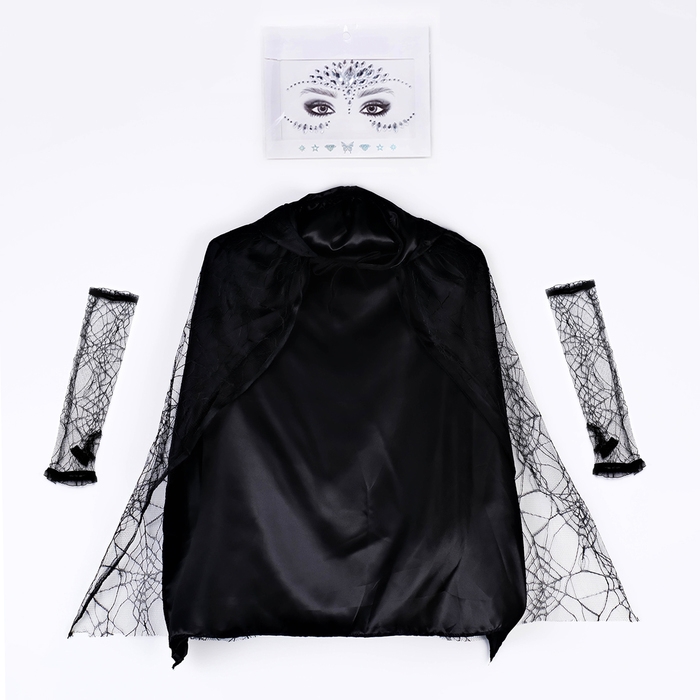 Карнавальный набор "Мадам паутинка" плащ, перчтаки, стразы