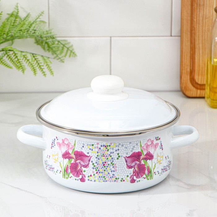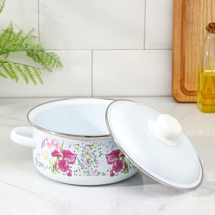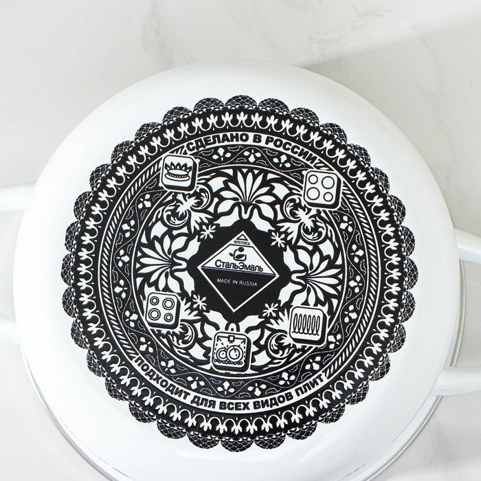 Кастрюля эмалированная «Мозаика», 2 л, индукция, цвет белый