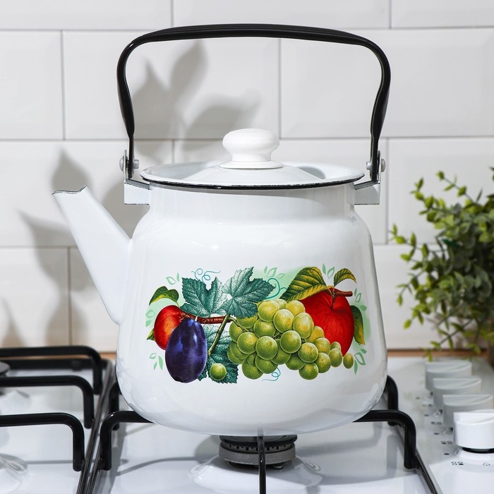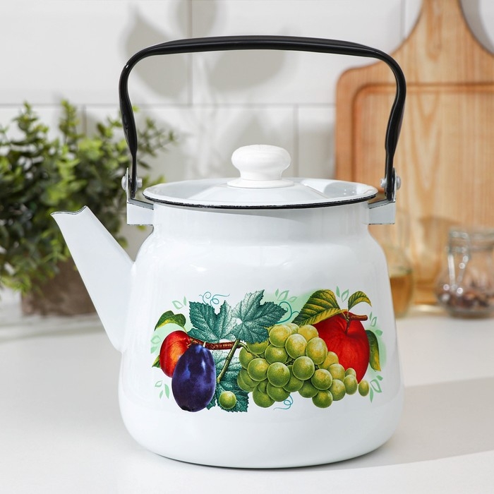 Чайник эмалированный «Дары лета», 3,5 л, цвет белый