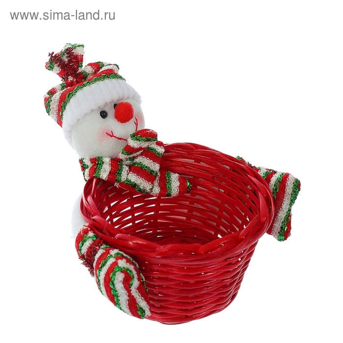 Наполните корзинку конфетками и поставьте на праздничный стол. Обычное угощение, преподнесённое таким образом, сразу превратится в настоящий сюрприз! А снежный зимний герой, обнимающий плетёную вазочку, создаст уютную атмосферу, украсит интерьер и принесёт много позитивных эмоций!