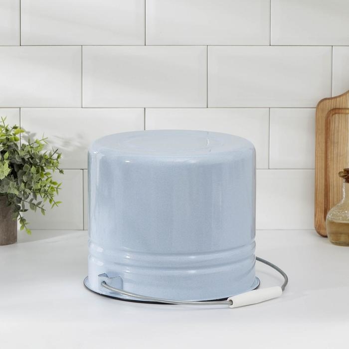 Ведро эмалированное цельнотянутое, 9 л, с крышкой, цвет светло-голубой