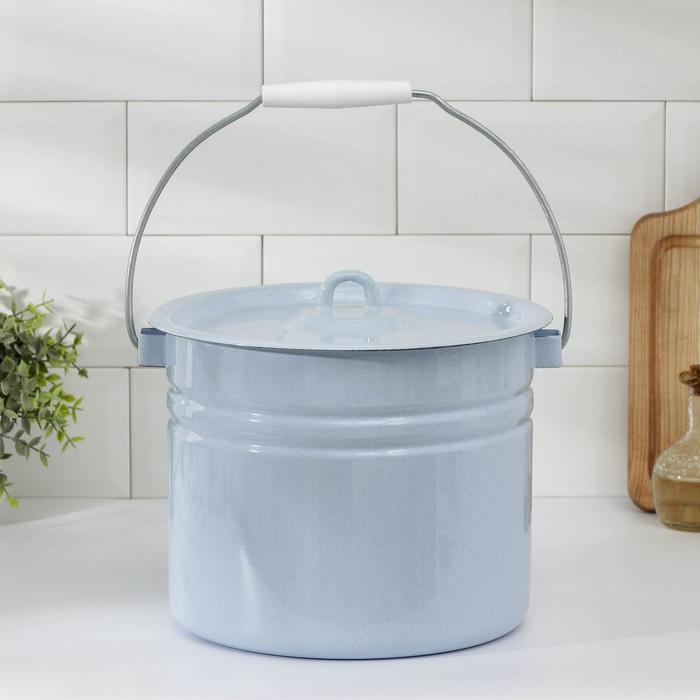 Ведро эмалированное, 12 л, с крышкой, цвет голубой