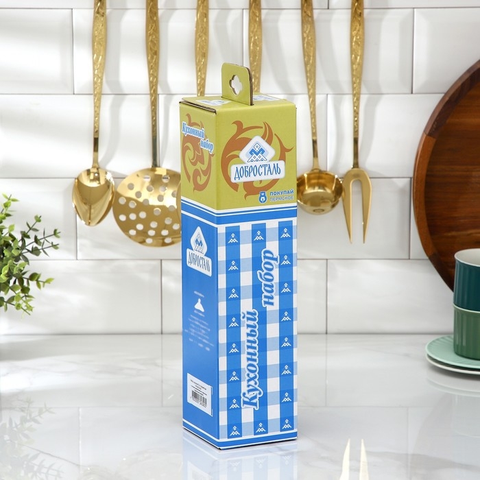 Набор кухонных принадлежностей Доляна «Лиам», 7 предметов, 33×12,5×12,5 см, цвет бирюзовый