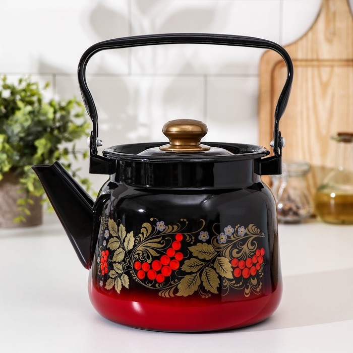 Чайник эмалированный «Рябина», 2,3 л, цвет красно-чёрный, деколь МИКС