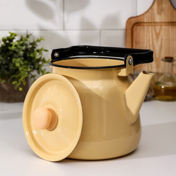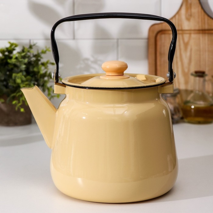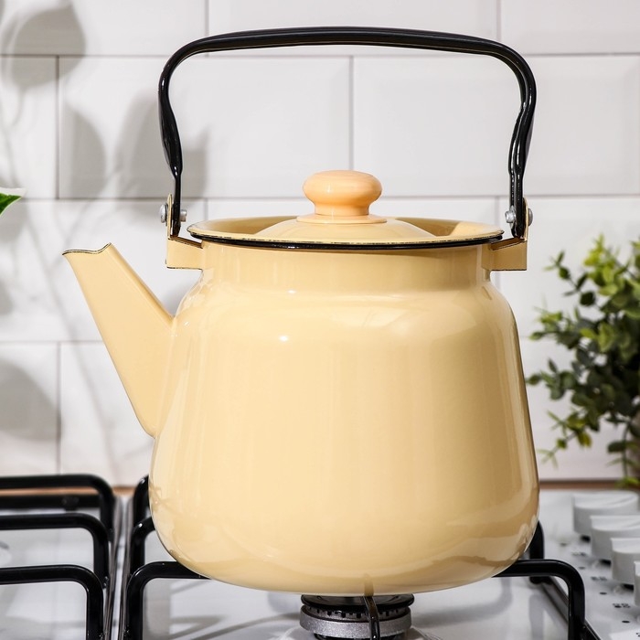 Чайник эмалированный, 3,5 л, без деколи, цвет бежевый