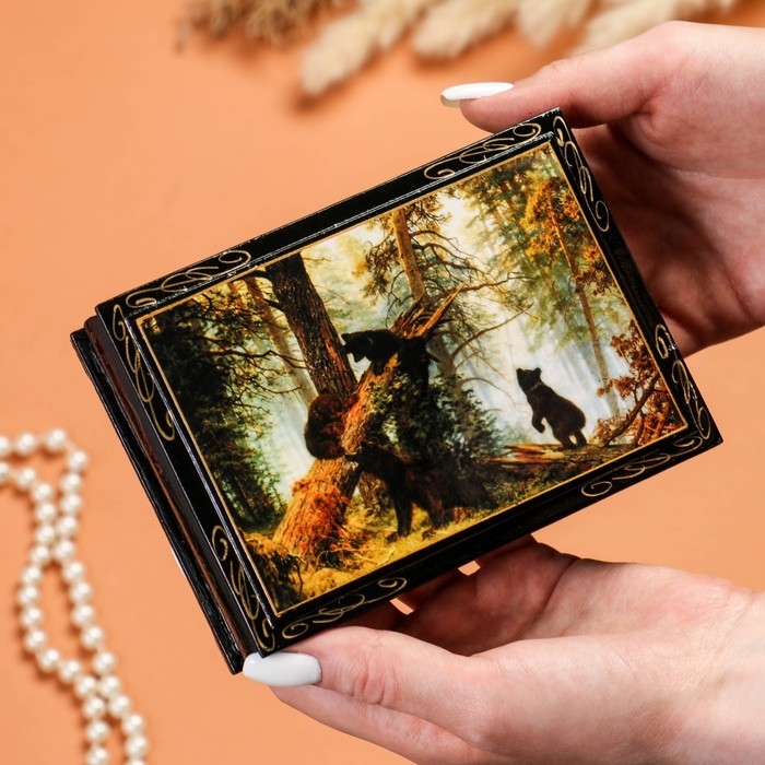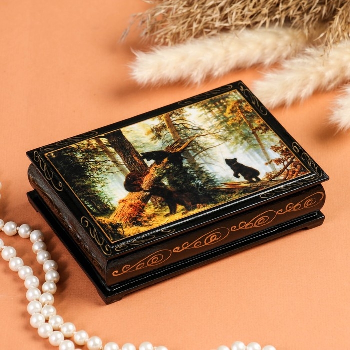 Шкатулка «Мишки в лесу», 10×14 см, лаковая миниатюра