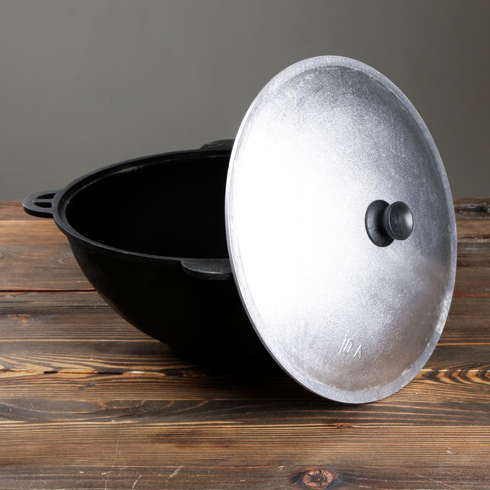 Казан чугунный, 10 л, плоское дно, алюминиевая крышка