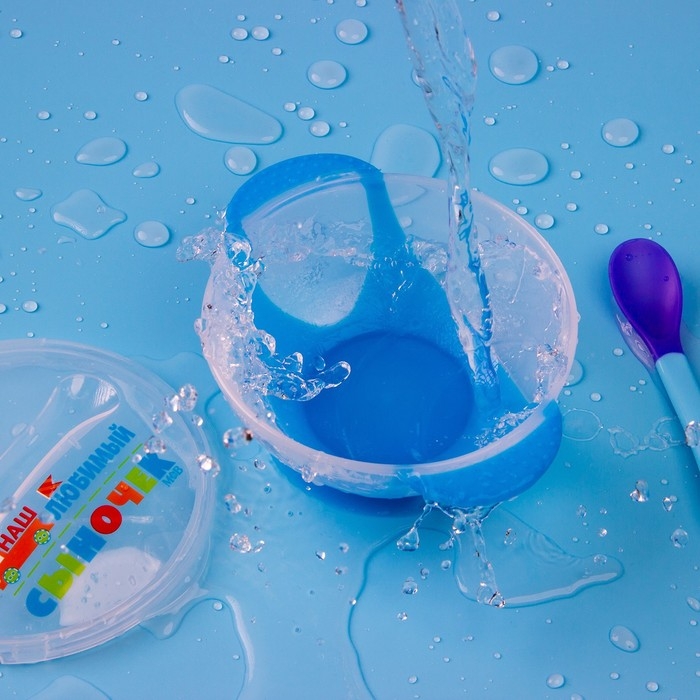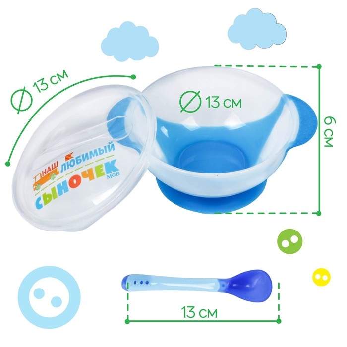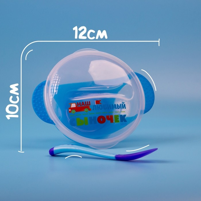 Набор для кормления «Наш любимый сыночек», 3 предмета: миска 350 мл на присоске, крышка, ложка, цвет голубой