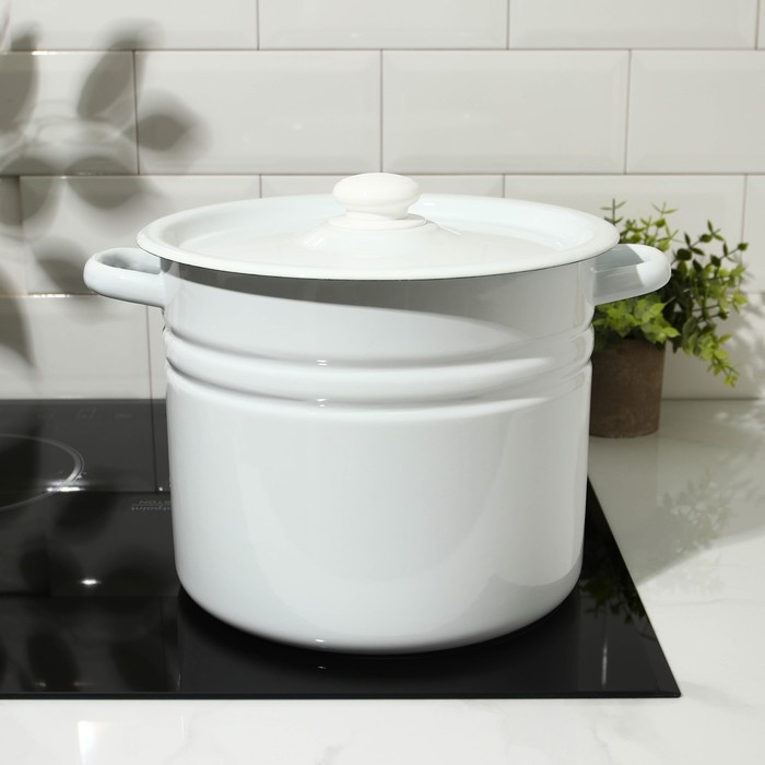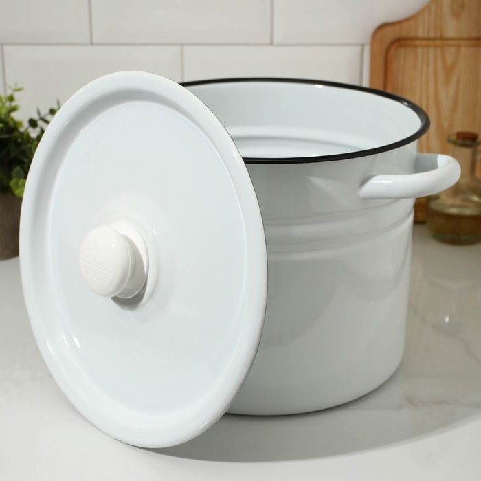 Кастрюля эмалированная без деколи, 9 л, индукция, ручка МИКС, цвет белый