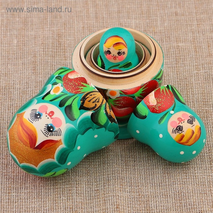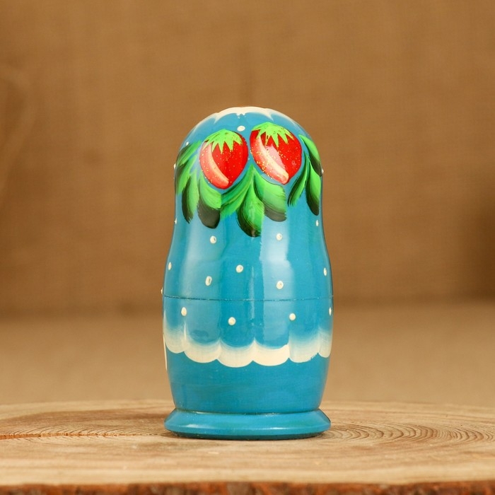 Матрёшка «Земляничка», голубое платье, 3 кукольная, 10-12 см