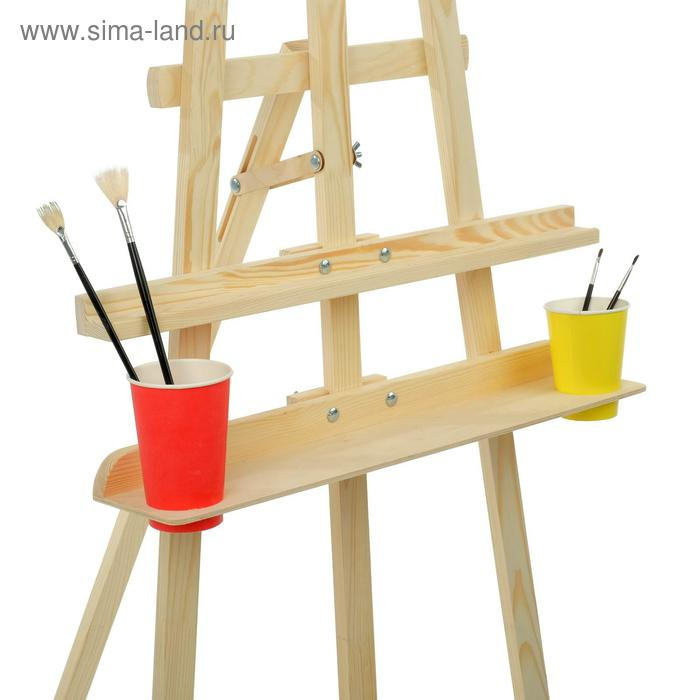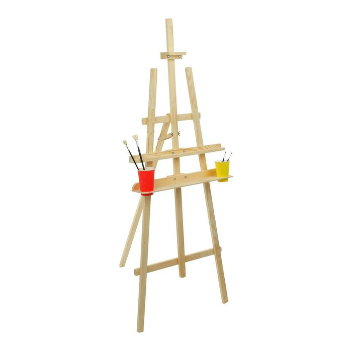 Мольберт тип «Лира» 175 х 62 см, (полка 60 х 12 см, с двумя подстаканниками), с бегунком, неокрашенное дерево, Calligrata №7