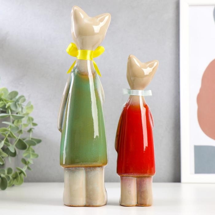 Сувенир керамика "Две кошечки с рыбкой" набор 2 шт 24,5х6х5, 19х5х4,5 см