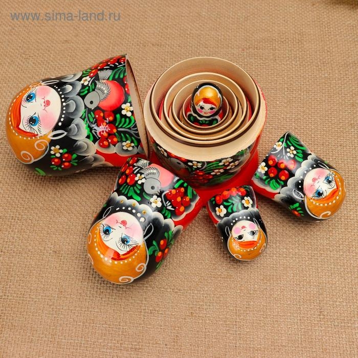 Матрёшка «Снегири в рябине», чёрный платок, 5 кукольная, 15 -18 см