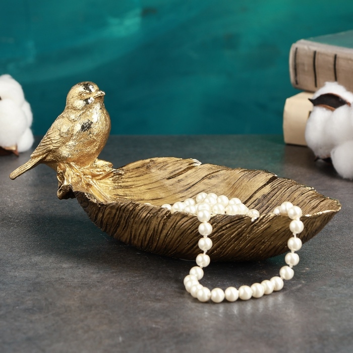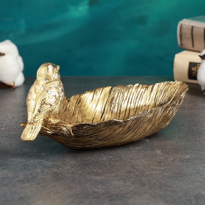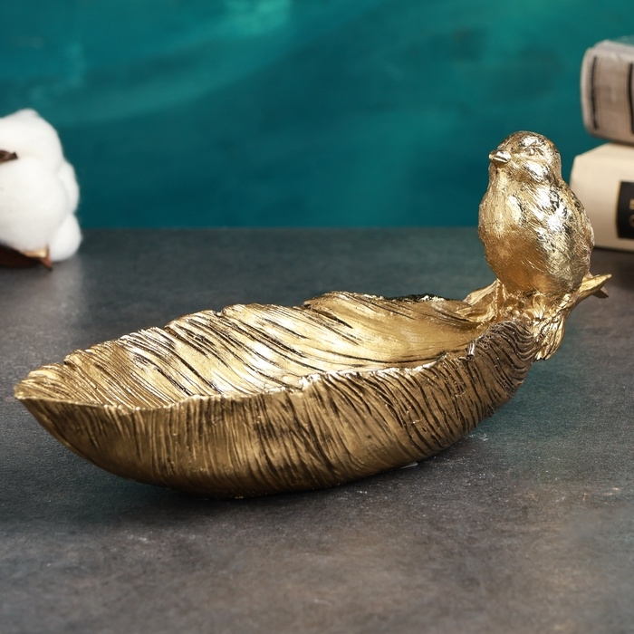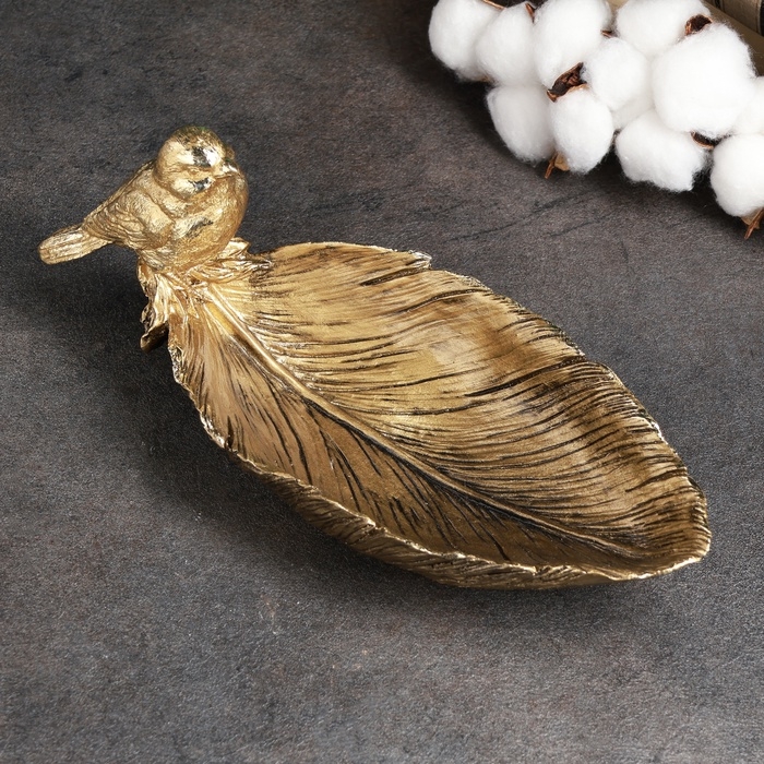 Подставка конфетница "Птичка на перышке" золото 25х10х10см