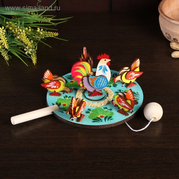 Сувенир "Курицы клюющие с петухом", d=16 см, микс