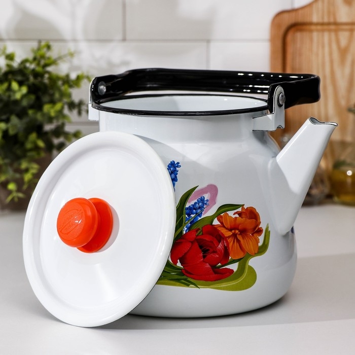 Чайник эмалированный «Тюльпан Май», 3,5 л, цвет белый