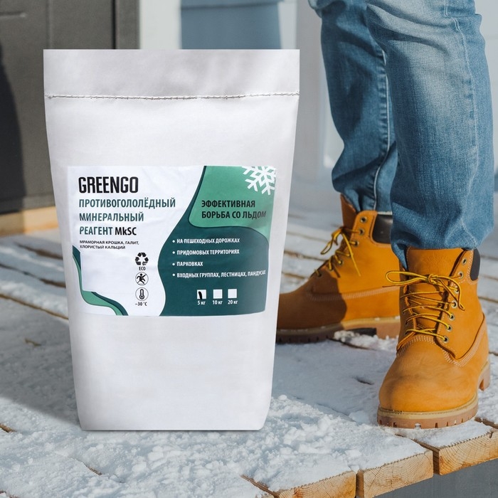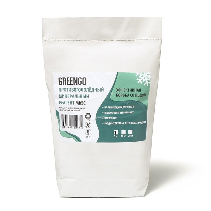 Реагент противогололёдный (мраморная крошка, галит, хлористый кальций), 5 кг, работает при —30 °C, Greengo