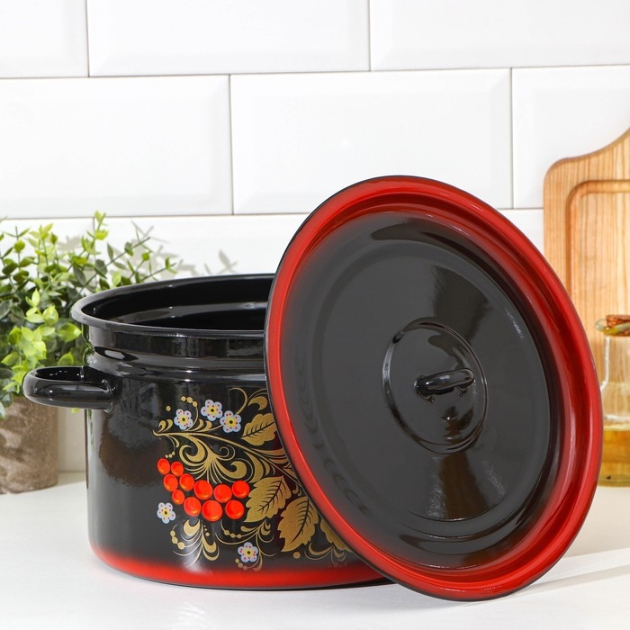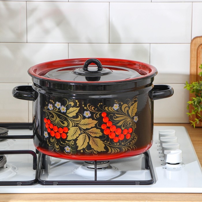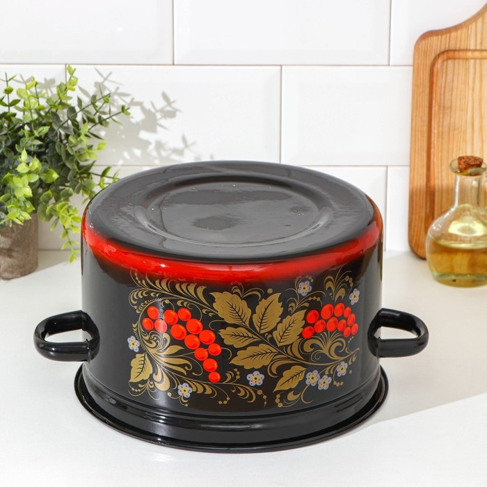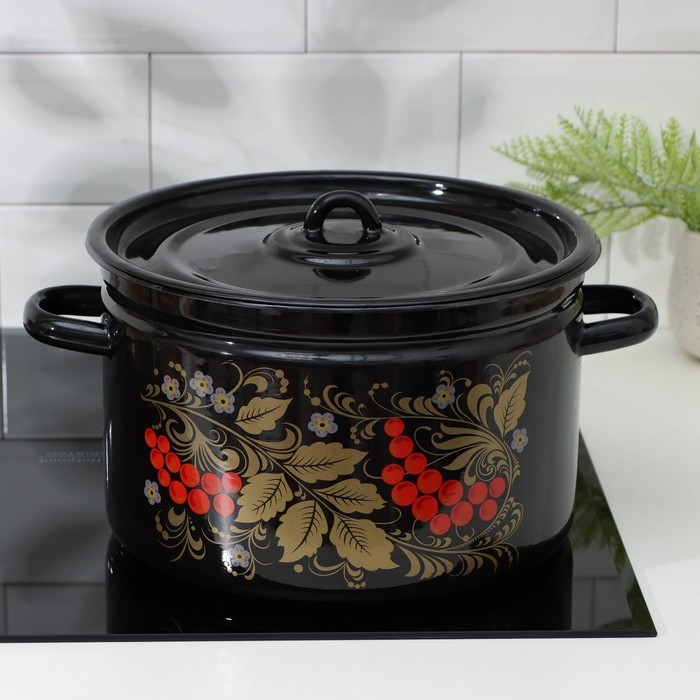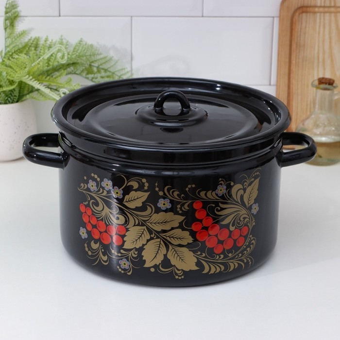 Кастрюля эмалированная «Рябина», 7 л, цвет черный