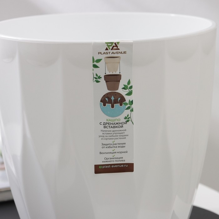 Кашпо для цветов со вставкой «Флюте», 4,5 л, d=20 см, h=20 см, цвет белый