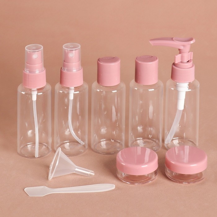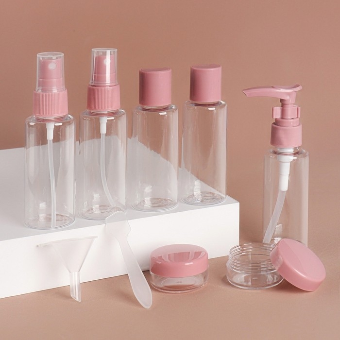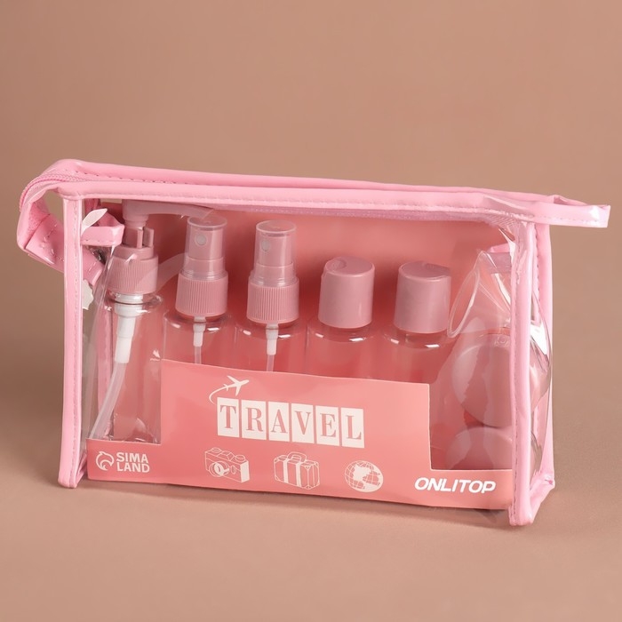 Набор для хранения, в чехле, 9 предметов, цвет прозрачный/розовый