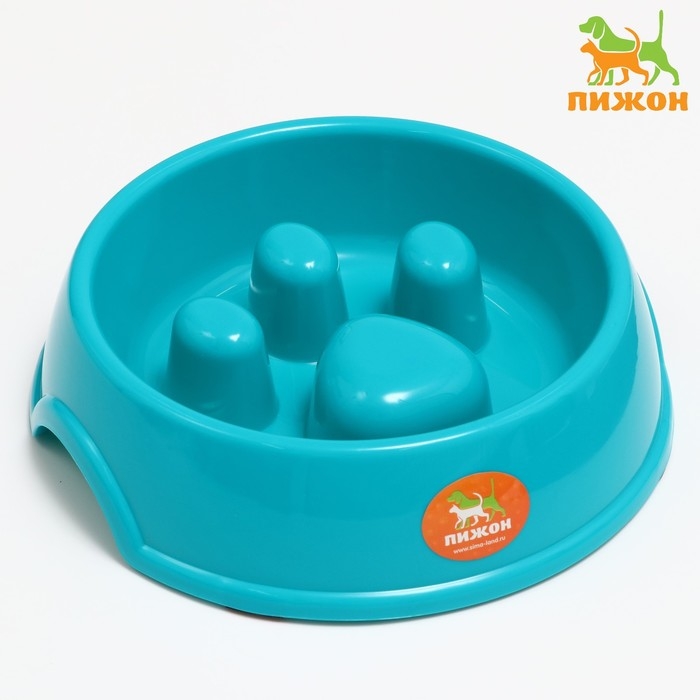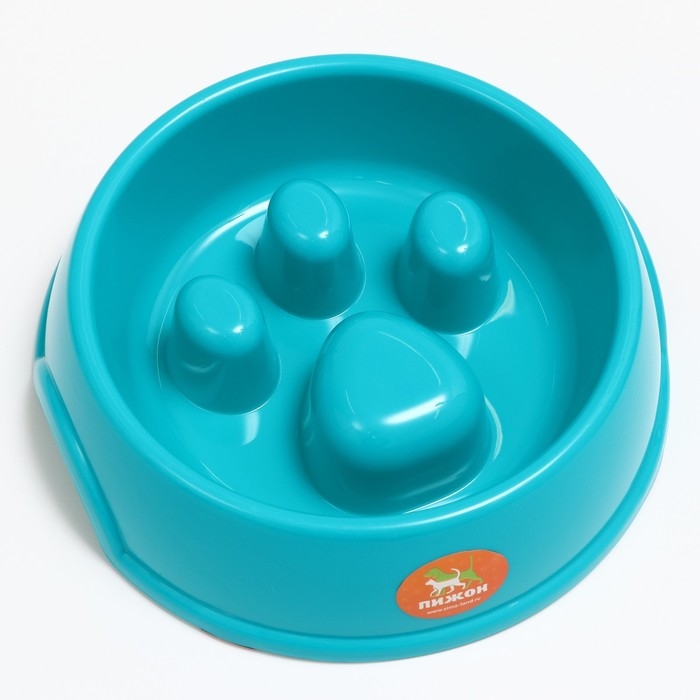 Миска для медленного кормления "Лапа", 22,5 х 23 х 6,5см, бирюзовая 5865054