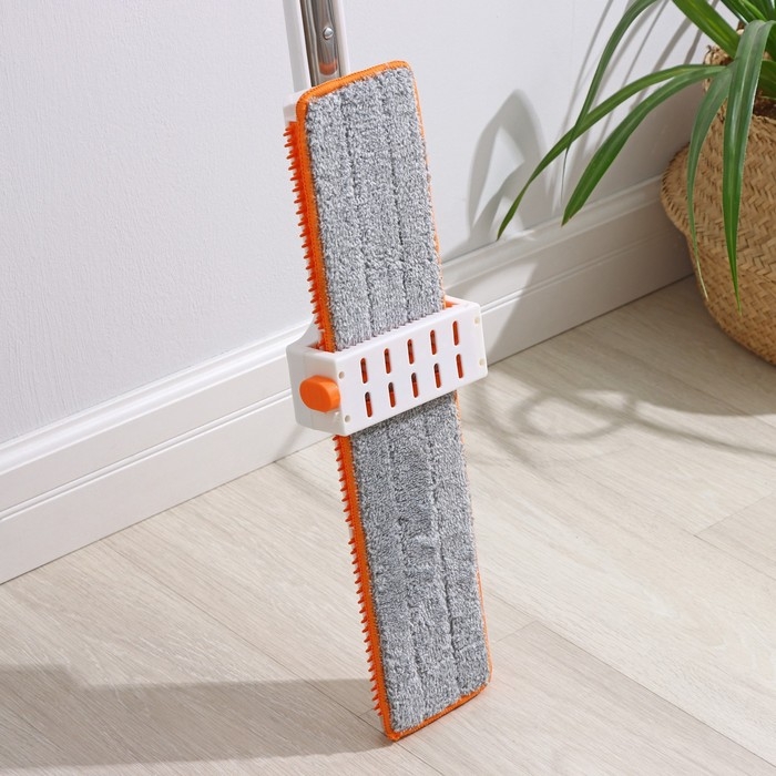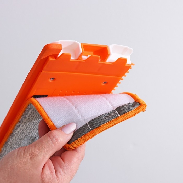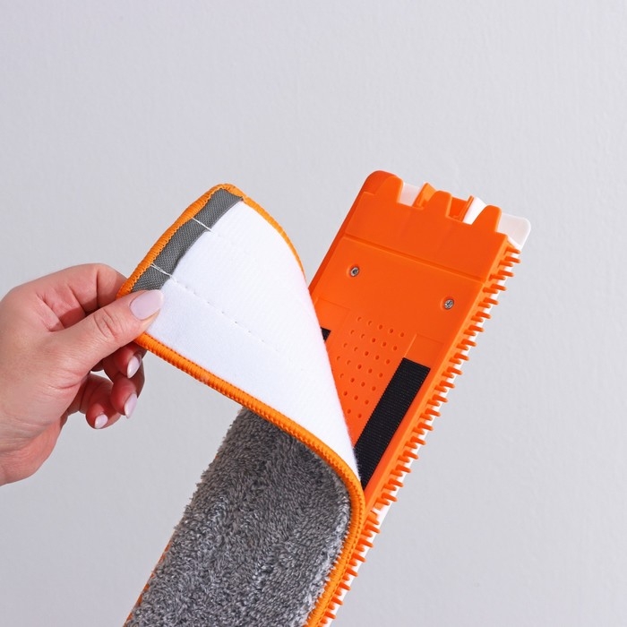 - Мягкая насадка из микрофибры прочно крепится к платформе швабры на специальные пазы и на липучки, она деликатно очищает поверхность пола, отлично впитывает воду, не оставляет разводов, ворсинок и не царапает поверхность.