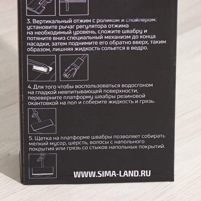- Швабра обладает уникальной конструкцией: по краям платформы находится водосгон с одной стороны, щётка – с другой.