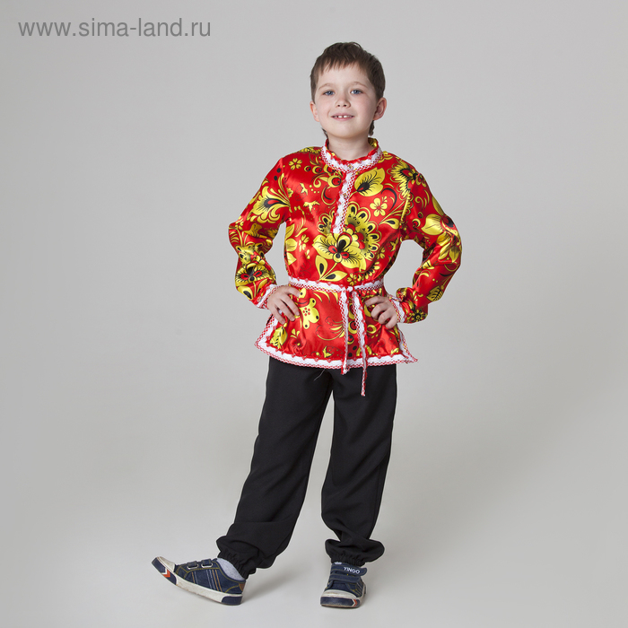 Карнавальная русская рубаха «Хохлома», атлас, р. 30, рост 110-116 см, цвет красный