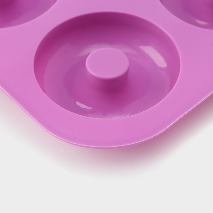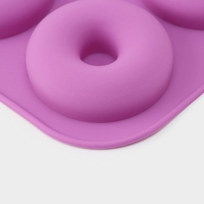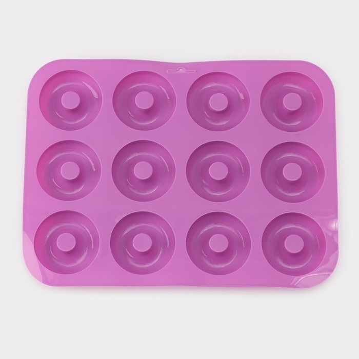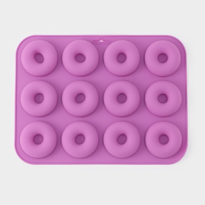 Форма для выпечки Доляна «Сладости.Пончик», силикон, 33×25×2 см, 12 ячеек, d=6,8 см, цвет фиолетовый